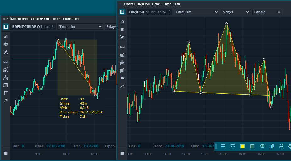 Together with this features, we have added several new drawings, such as Ruler, Flag, Arrow, Gann box, ABC pattern and Head&Shoulders pattern. The new ones will come soon, so keep tracking for our updates.